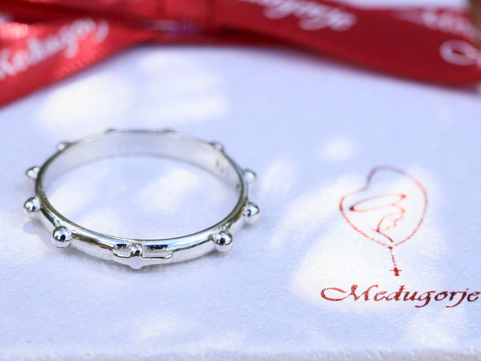 Rosary ring, simple rosary ring, one decade rosary, sterling silver 925 rosary, catholic prayer beads, one decade rosary, silver cross ring