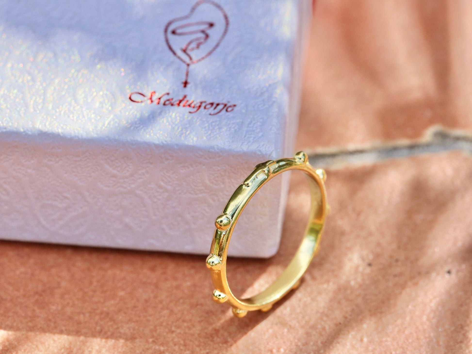 Rosenkranzring, Sterlingsilber 925 vergoldeter Ring, Gebetsperlenring, katholischer Rosenkranz, zierlicher Rosenkranzring, minimalistischer Ring, Perlenrosenkranz