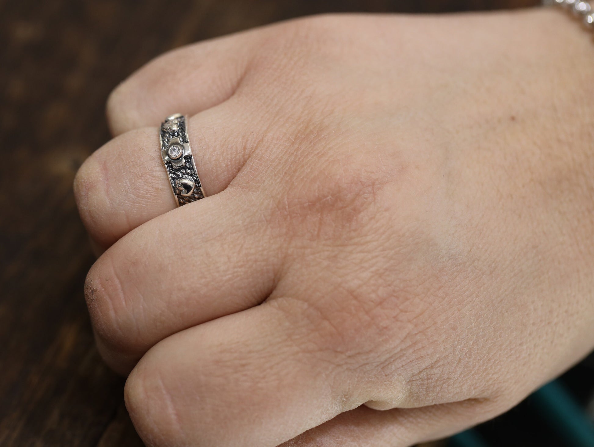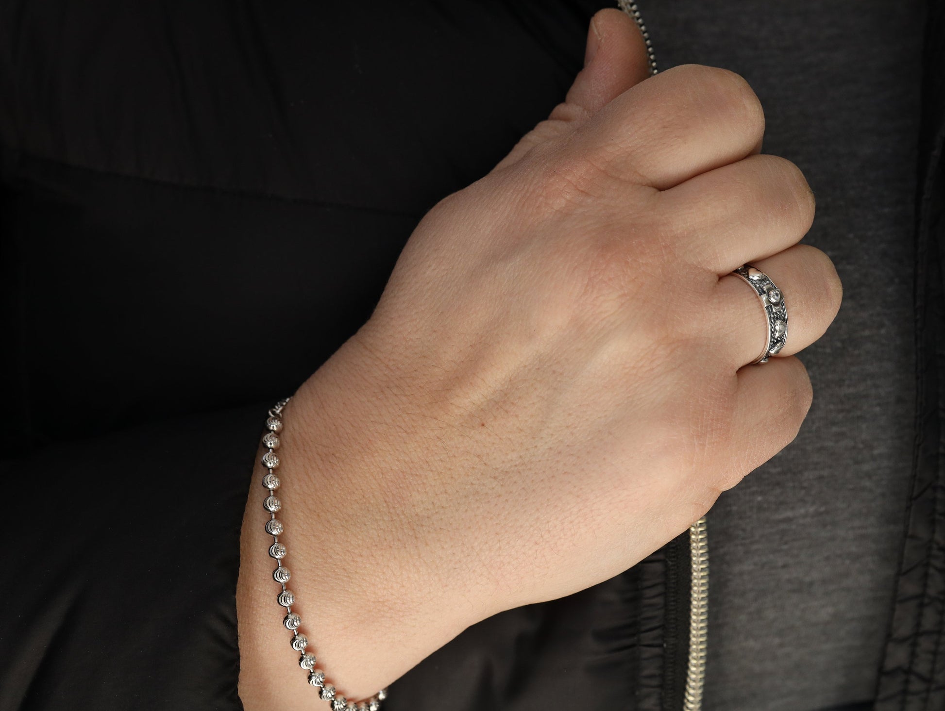 Dieser Rosenkranzring besteht aus antikem Sterlingsilber 925.