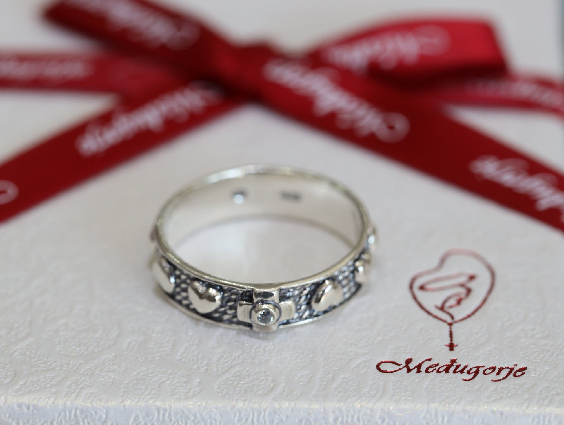 Rosenkranzring, Sterlingsilber-Rosenkranz, Rosenkranz-Gebetsperlen, Ring mit Kreuz, Damen-Rosenkranzring, Vintage-Rosenkranzring, Rosenkranzring mit Herzen