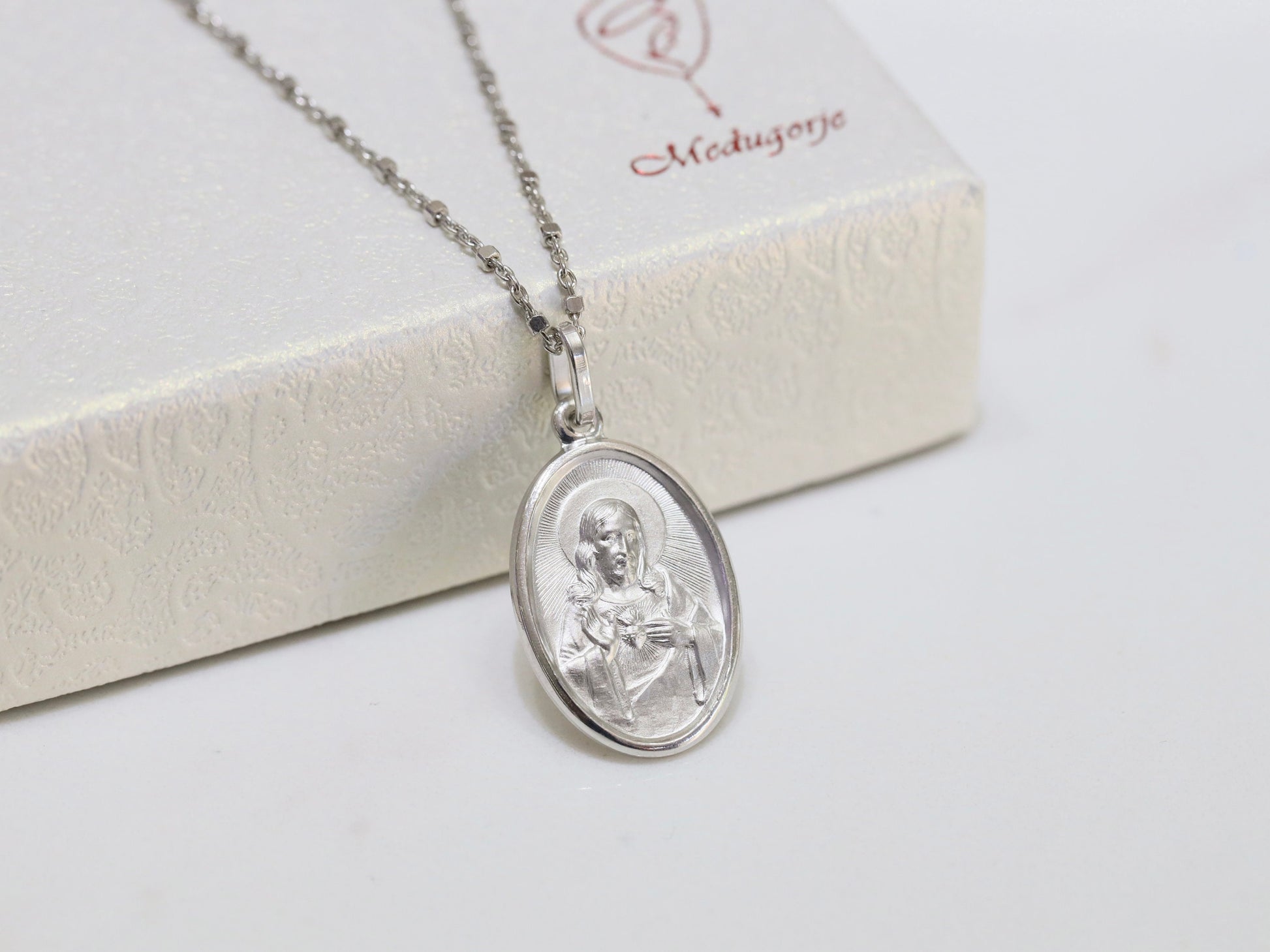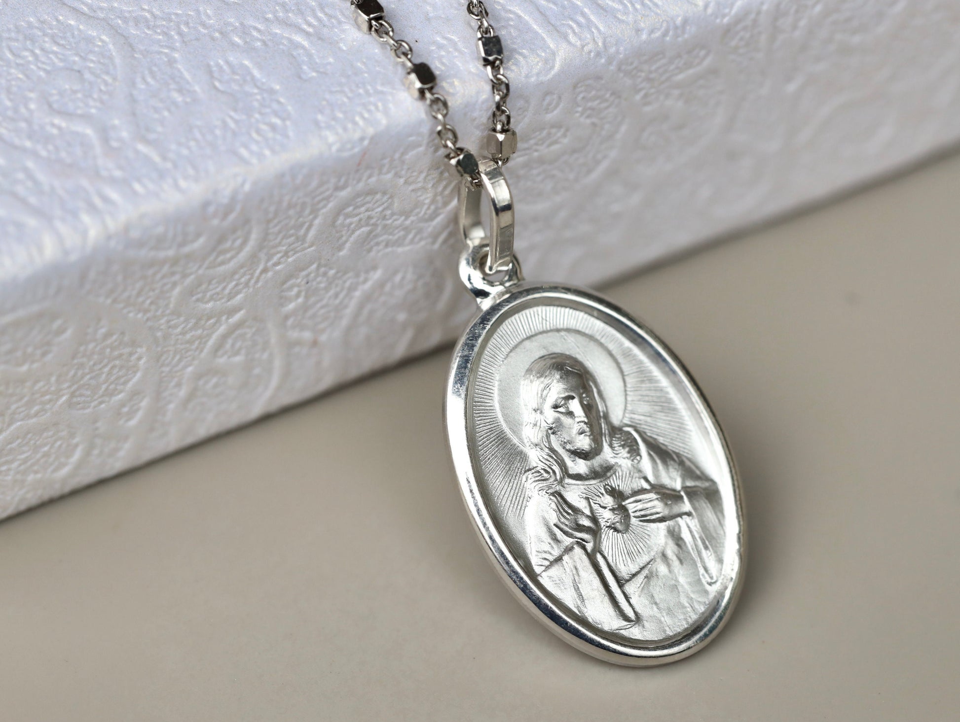 Sacred Heart of Jesus medal, sterling silver 925 medal, Jesus Christ pendant, precious medal of Jesus Christ, 18 mm medal of Jesus