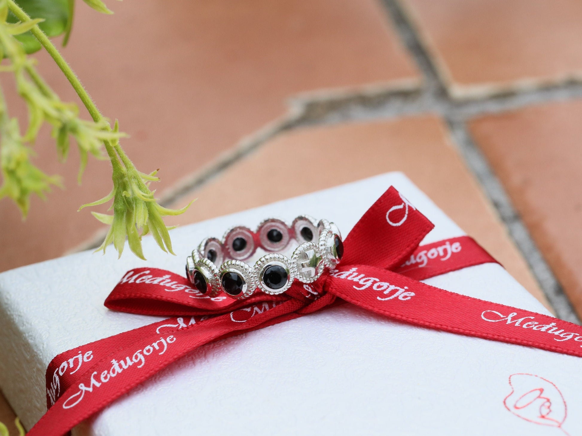 Rosary ring, sterling silver 925, one decade rosary, black rhinestone rosary ring, cross ring, ring for catholic women, catholic rosary